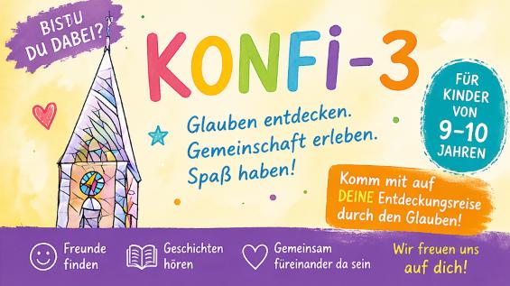 Ab dem kommenden Schuljahr gehen wir in unserer Kirchengemeinde einen neuen Weg in der Konfiarbeit: Der Weg zur Konfirmation beginnt künftig schon in der 3. Klasse und entspannt sich dafür in der 7./8. Jahrgangsstufe. Jugendliche feiern ihre Konfirmation in der 8. Klasse und bereiteten sich bisher ab der 7. Klasse vor. Konfi3 zieht einen Teil dieser Vorbereitung vor.